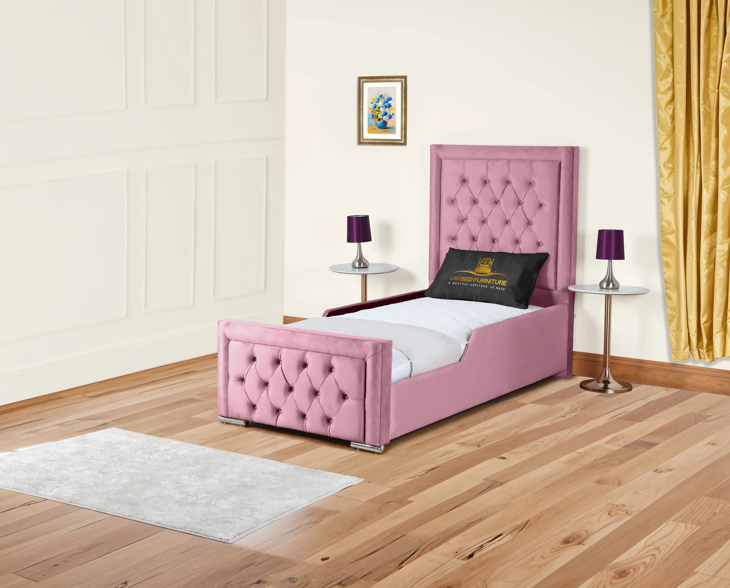 Enhance your bedroom with our Noah upholstered bed the headboard, a perfect blend of luxury and sophistication. Crafted from premium, soft pink velvet, this headboard features a timeless button-tufted design that adds a touch of classic charm to any bedroom decor. The generous padding ensures exceptional comfort and support, whether you're sitting up to read or relaxing. Built with a sturdy solid wood frame, this headboard promises durability and long-lasting use. Its versatile style complements a range of interior themes, from modern to traditional.